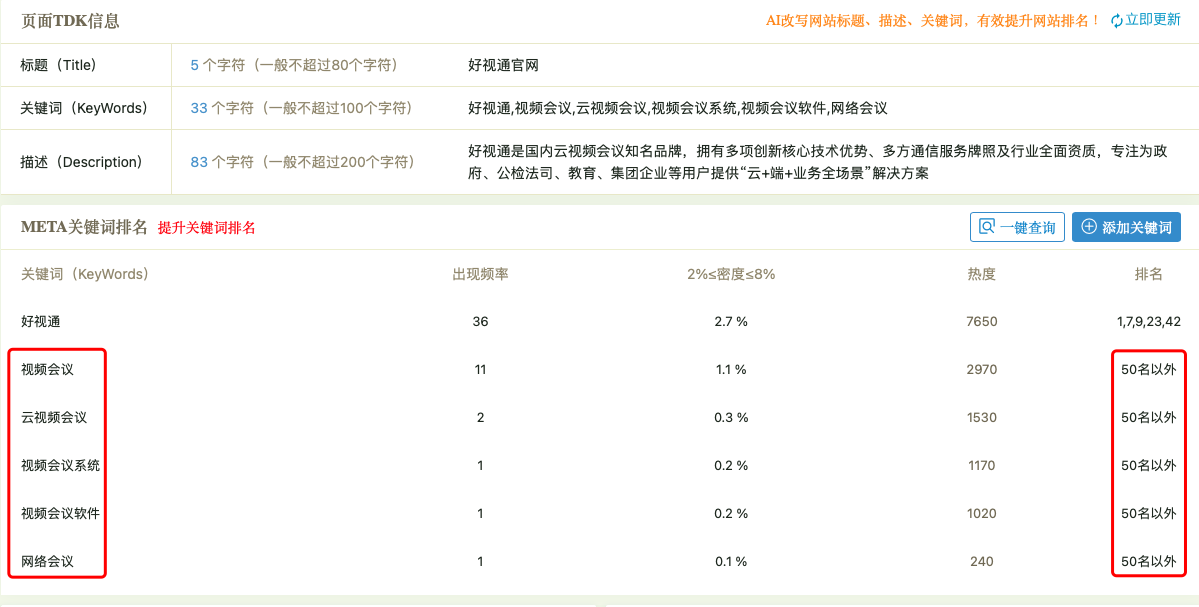 關于視頻會議品牌-好視通公司網站SEO應用分析