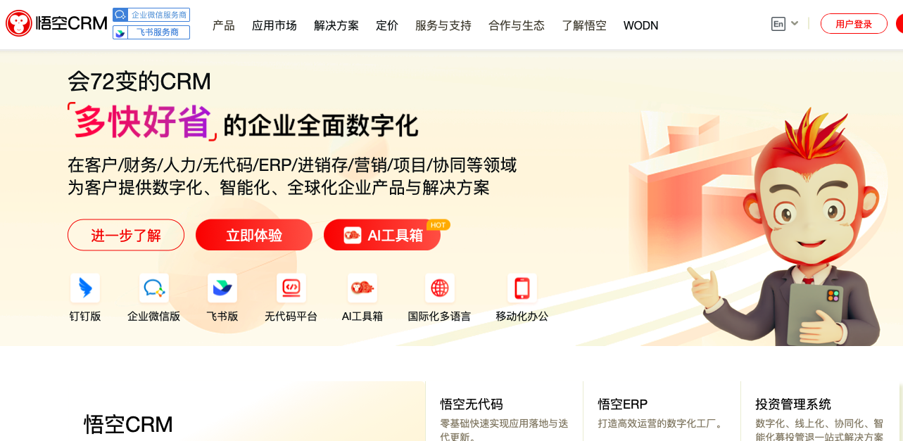鄭州卡卡羅特軟件科技有限公司提供企業(yè)管理軟件(CRM/HRM/OA/ERP等)的研發(fā)、實施、營銷、咨詢、培訓(xùn)、服務(wù)于一體的信息化服務(wù)。 其主打品牌--悟空CRM在中國的開源管理軟件行業(yè)有較高的知名度。 目前軟件已達到千萬級的用戶量,開源系統(tǒng)下載量達到200多萬次, 已覆蓋涉及制造業(yè)、服務(wù)業(yè)、金融業(yè)、政府機構(gòu)等10多種行業(yè)。