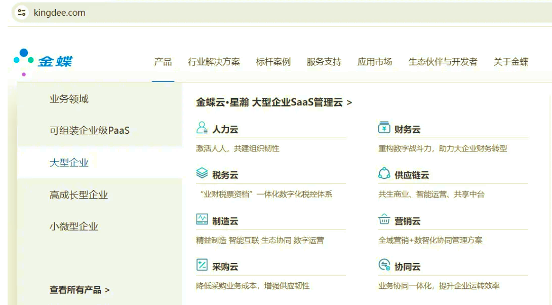 金蝶軟件(中國)有限公司在中國企業(yè)資源管理云服務(wù)市場排名第一,金蝶在SaaS EA (企業(yè)級應(yīng)用軟件云服務(wù))、SaaS ERM(企業(yè)資源管理云服務(wù))、財務(wù)云市場占有率維持排名第一,并連續(xù)19年穩(wěn)居中國成長型企業(yè)應(yīng)用軟件市場占有率第一。