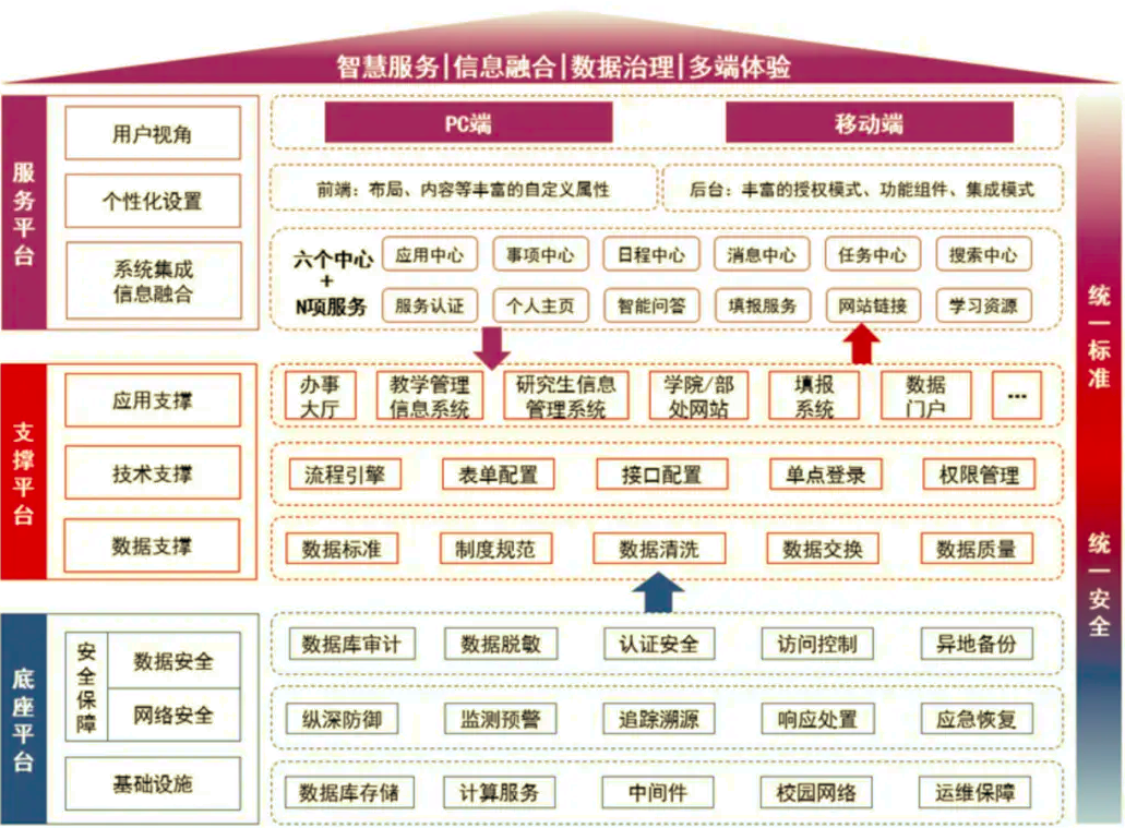 我們將這套新型門戶稱為融合門戶。融合門戶應秉持以服務為中心的建設理念,基于最新的信息技術,融合各項服務,堅持優先服務師生急需,強化效果導向。
